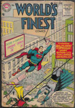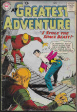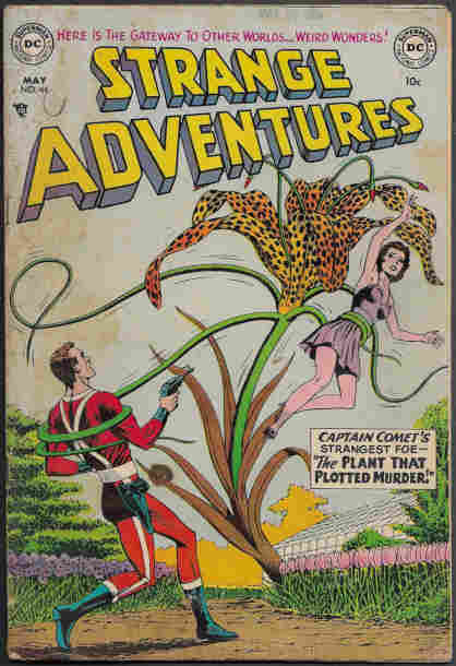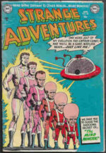 *DC: Arguably the first DC super-hero of the Silver Age – and for many years unjustly overlooked by comics historians – Captain Comet made his debut in 1951, in the 9th issue of the sci-fi anthology Strange Adventures. Adam Blake, a young man born with powers and abilities he didn’t comprehend, was revealed as a mutant (Ha! And you thought Marvel did it first!), not a throwback but an evolutionary ‘flashforward’ to humanity at its peak of physical perfection, with heightened intellect and the powers of telepathy and telekinesis in addition to his tireless physical prowess. Adopting the identity of Captain Comet, Blake vows to protect humanity against extraterrestrial menaces. By the time of issues #40 & #44 (1954) writer John Broome had been joined by artist Murphy Anderson to create some of the most exquisite science fiction/super-hero adventures ever, with the rest of the comic being filled out by equally lovely work by top-notch writers and artists.