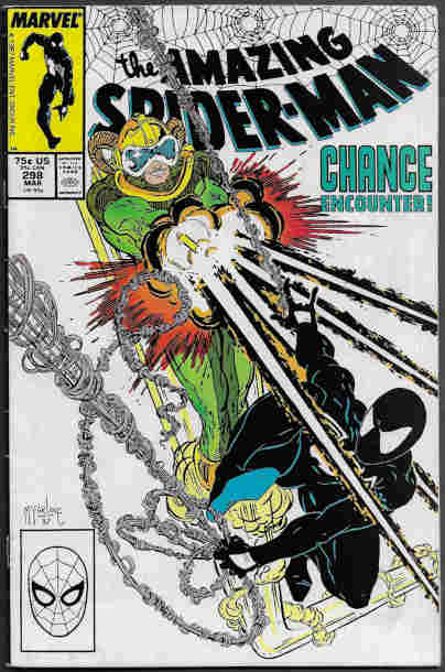 #298 FN/VF £45 The debut of Eddie Brock (later to become Venom) and 1st Chance. Also, the debut of artist Todd McFarlane, who fast became a fan favourite. Nice copy with great colour gloss, square corners, white pages and firm staples. One soft crease over the logo, two firmer ones across right bottom corner, but none breaking colour.