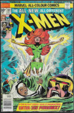 *Marvel: The Claremont & Cockrum New X-Men was already a critical hit when #101 turned up, and in a dramatic turn of events, Jean Grey, former weak sister of the team, was elevated into a powerhouse when a cosmic ray storm seemed to transform her into the entity known as Phoenix – and a major, ultimately tragic, story arc for the X-Men began. The legend was somewhat tarnished in later years by Marvel’s back & forth position on whether Jean actually was the Phoenix, or whether the Phoenix force just manifested itself in her form (with a swingin’ new costume), but nevertheless, this remains a key and highly sought after issue. For those on a limited budget, this is a chance to pick up a low grade copy of this key issue, pence printed, glossy, but creased and crumpled and has been through the wars a little. Pages and staples are okay. (For those of you looking for an investment grade copy, we also have a nice VF+ copy in our catalogue).