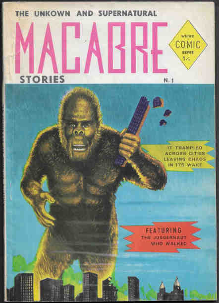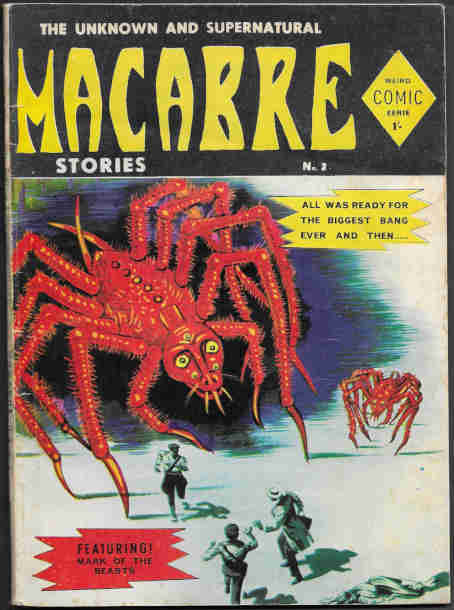 *Boys’ Adventure & War Comics: Around 1966/67, John Spencer published four series of limited lifespan, containing black and white stories of the supernatural under colour covers, several stories each issue. All material was original, with Mick Anglo at the artistic helm; some covers were repurposed from Badger Books, by the same publisher. Here is a complete set of one of those series, Macabre Stories #1-6. Hey, we know it was scary ‘cos they used the words ‘unknown’, ‘supernatural’, ‘weird’ and ‘eerie’ on the covers just in case you were in any doubt. These turn up occasionally, but are not common.