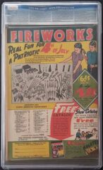 252 GD/VG £1,350 1st Supergirl, 1st Metallo. A lower to mid-grade copy, pre-distribution so cents of course. The cover image is bright and colourful and the comic presents reasonably well, with firm staples and decent cream coloured pages. Although the central cover image is unmarked, there are signs of reading wear at central right edge in the form of (probably) finger marks leading to smudgy creases which break colour over the tail fins of Supergirl’s rocket (see scan). The other significant flaw is a lower spine split of about 4 cm which extends throughout the pages to lesser degrees. Nevertheless, a good-looking copy of a major key issue which would be beyond a lot of collectors’ budgets if in much higher grade. High resolution images are available on request.