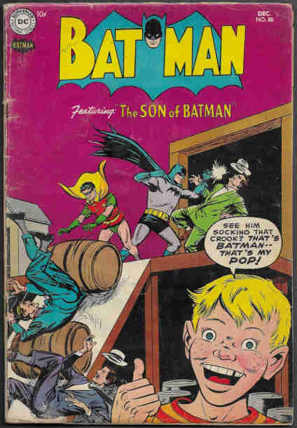 #88 GD £70 SOLD A mystery at sea, letters to Batman & Robin after loot disappears, Batman gains a surrogate ‘son’. Left of cover a little wavy from probable water damage, but good colours, staples and pages.