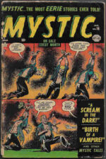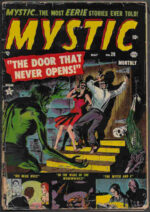 *Horror 1940-1959: Atlas’s Mystic was one of their prime horror titles, with the usual Atlas brand of quality art and storytelling. From the Bute Collection, here are three issues of Mystic from 1953 in varying grades, in all their pre-code loveliness.